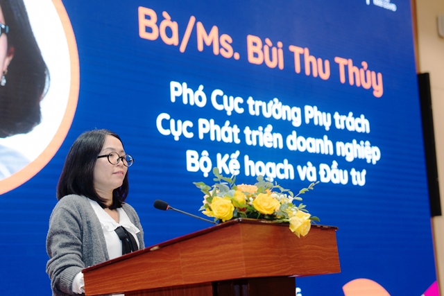 | Phó Cục trưởng Phụ trách Cục Phát triển doanh nghiệp, Bộ Kế hoạch và Đầu tư Bùi Thu Thủy phát biểu tại Hội nghị (Ảnh: PV) |