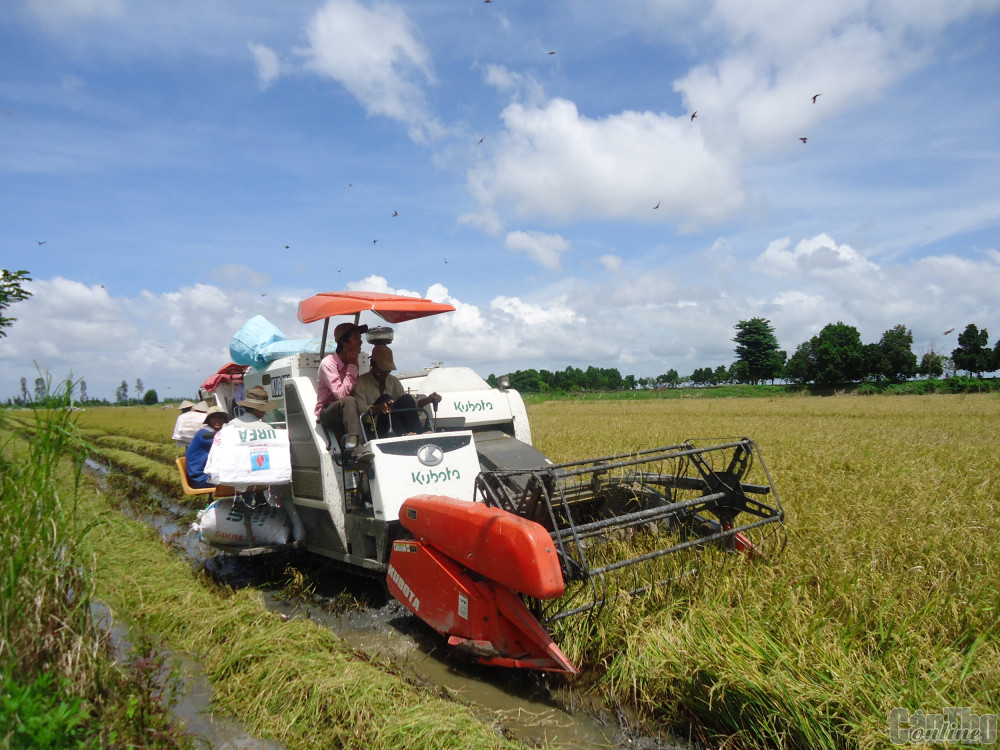 Thu hoạch lúa tại một HTX trên địa bàn xã Thạnh Quới, huyện Vĩnh Thạnh.