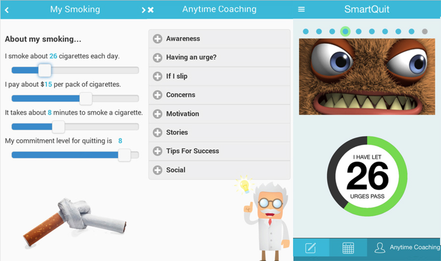 Sơ đồ giúp theo dõi quá trình cai thuốc trên ứng dụng Smart Quit. Ảnh: MobiHealthNews