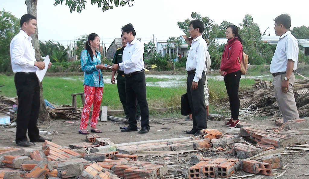 Ngày 05/7, tại Cần Giuộc, Chủ tịch UBND huyện - Nguyễn Tuấn Thanh cũng thăm hỏi, động viên và trao tiền hỗ trợ khẩn cấp 5 triệu đồng cho mỗi gia đình bị sập nhà hoàn toàn do ảnh hưởng của mưa dông.