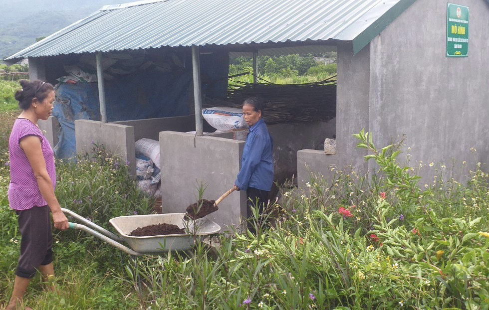 | Mô hình thu gom, phân loại, xử lý rác thải hữu cơ thành phân bón tại xã Cư Yên, huyện Lương Sơn góp phần bảo vệ môi trường, tạo ra phân hữu cơ phục vụ sản xuất. (Ảnh: Thu Thủy). |