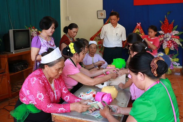 | Người dân phường Thịnh Lang, thành phố Hòa Bình tham gia mô hình "Nuôi lợn nhựa khuyến học". (Ảnh: DL). |