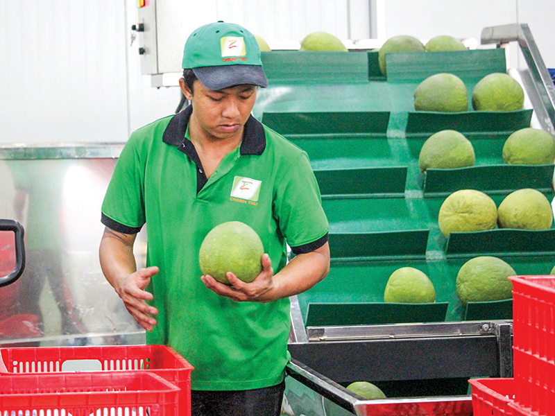 Kiểm tra chất lượng trái bưởi phục vụ xuất khẩu sang thị trường Hoa Kỳ tại Công ty CP Tập đoàn Xuất nhập khẩu trái cây Chánh Thu, tỉnh Bến Tre.