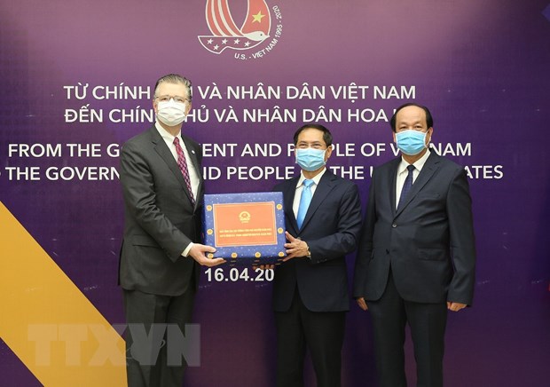 Việt Nam tặng vật tư y tế giúp Hoa Kỳ phòng chống dịch COVID-19. (Ảnh: Dương Giang/TTXVN)