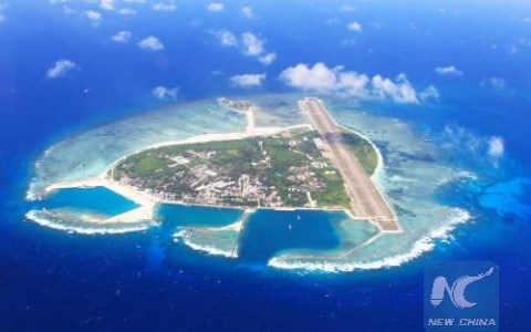 Hình ảnh mà Trung Quốc công bố đã hoàn tất cải tạo một đảo ở Biển Đông (Ảnh Tân Hoa xã)