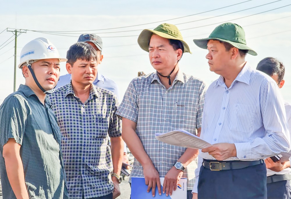 Phó Chủ tịch UBND TP Cần Thơ Dương Tấn Hiển (bìa phải) kiểm tra công trình đường tỉnh 922.