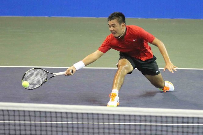 Nỗ lực cứu bóng của Lý Hoàng Nam trong trận đấu với Maxime Tabatruong. Ảnh: T.P