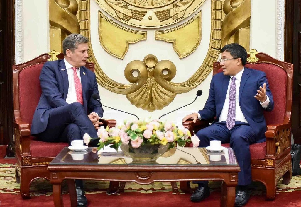 | Thứ trưởng Thường trực Bộ Ngoại giao Nguyễn Minh Vũ tiếp và làm việc với Bộ trưởng Ngoại thương Cộng hòa Costa Rica Manuel Tovar |