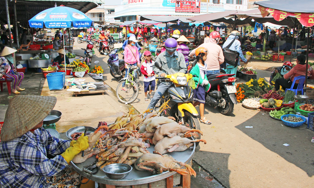 Hoạt động buôn bán tại chợ Bàu Sậy, huyện Vĩnh Hưng sôi động trở lại sau tết