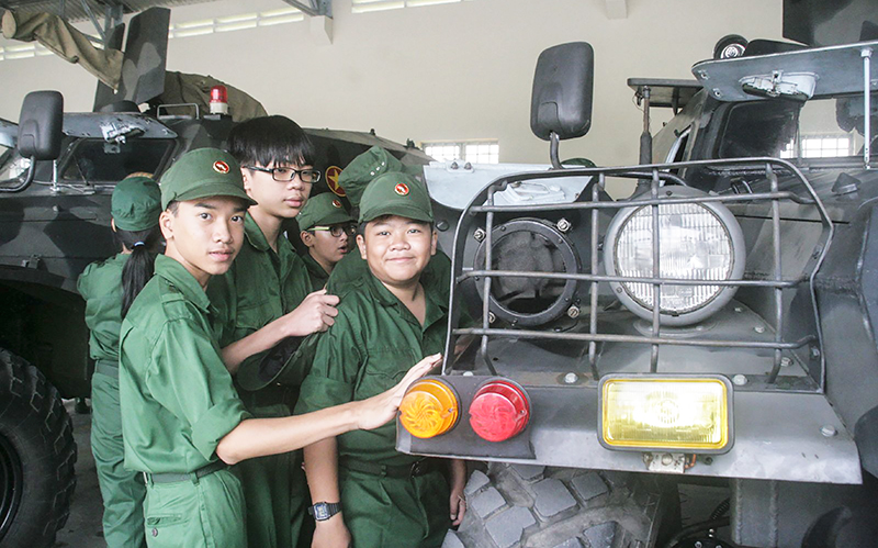 Học viên khóa huấn luyện “Học kỳ trong Quân đội” tham quan và tìm hiểu lịch sử Đại đội Thiết giáp (Bộ Chỉ huy Quân sự TP Cần Thơ). Ảnh: QUỐC THÁI