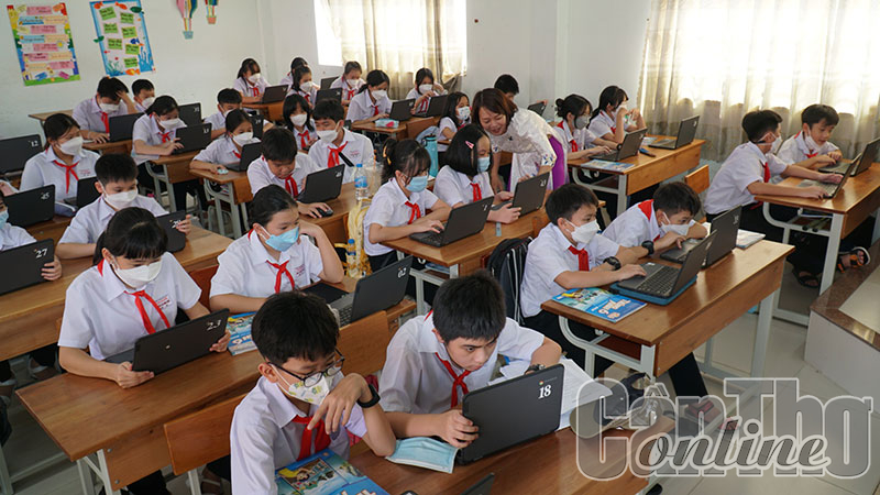 Một buổi học của học sinh Trường THCS Đoàn Thị Điểm, quận Ninh Kiều. Ảnh: B.NG