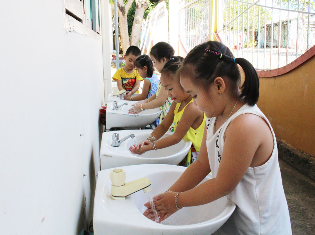 Cần thường xuyên cho trẻ rữa tay bằng xà phòng và nước sạch