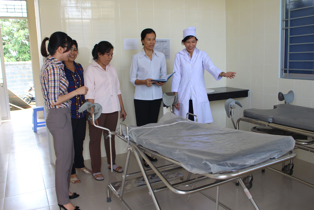 Chi cục trưởng Chi cục DS-KHHGĐ Long An - Trần Thị Liễu (áo sơ-mi trắng) khảo sát công tác chuẩn bị Chiến dịch tăng cường vận động lồng ghép cung cấp dịch vụ chăm sóc sức khoẻ sinh sản/KHHGĐ năm 2016 tại các địa phương