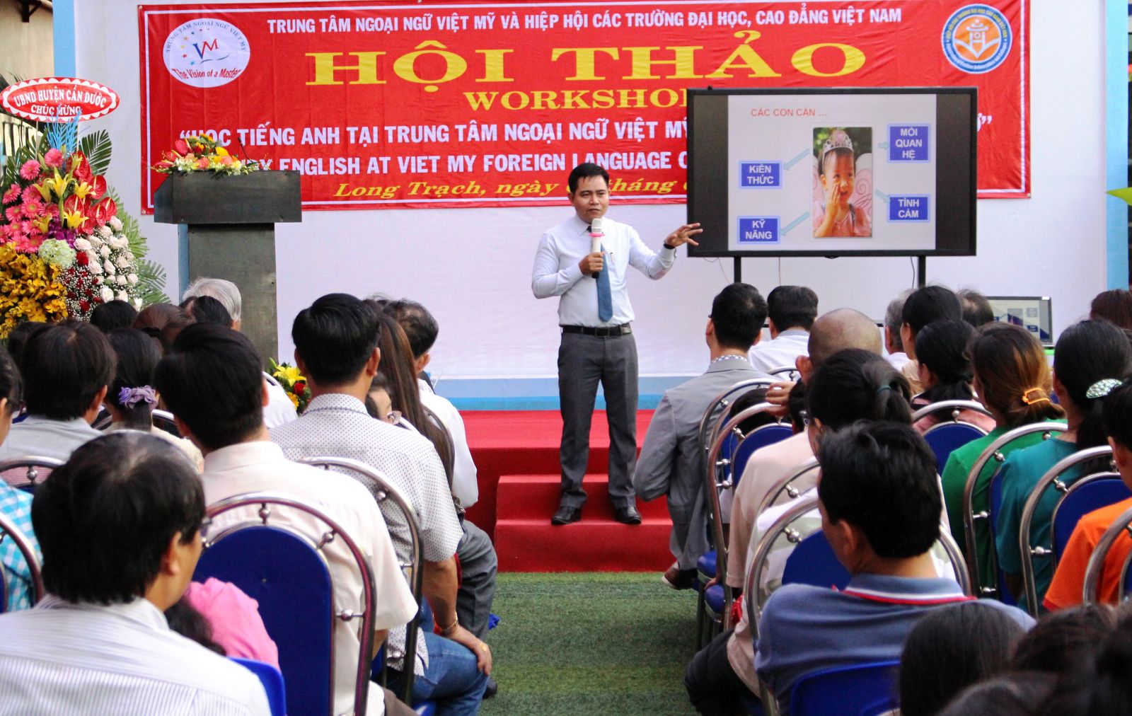 Với chủ đề: “Học tiếng Anh tại Trung tâm Ngoại ngữ Việt Mỹ - cơ hội chắp cánh ước mơ”, đại biểu được các chuyên gia chia sẻ vai trò, lợi ích, sự cần thiết của việc học tiếng Anh tại Trung tâm Ngoại ngữ nói chung cũng như định hướng một cách thiết thực việc học tiếng Anh tại Trung tâm Ngoại ngữ Việt Mỹ nói riêng; phương pháp dạy và học tiếng Anh hiệu quả; quá trình liên thông từ việc học tiếng Anh đến luyện thi chứng chỉ khung Châu Âu; thực trạng và giải pháp cho việc nâng cao năng lực tiếng Anh cho học sinh Việt Nam;…