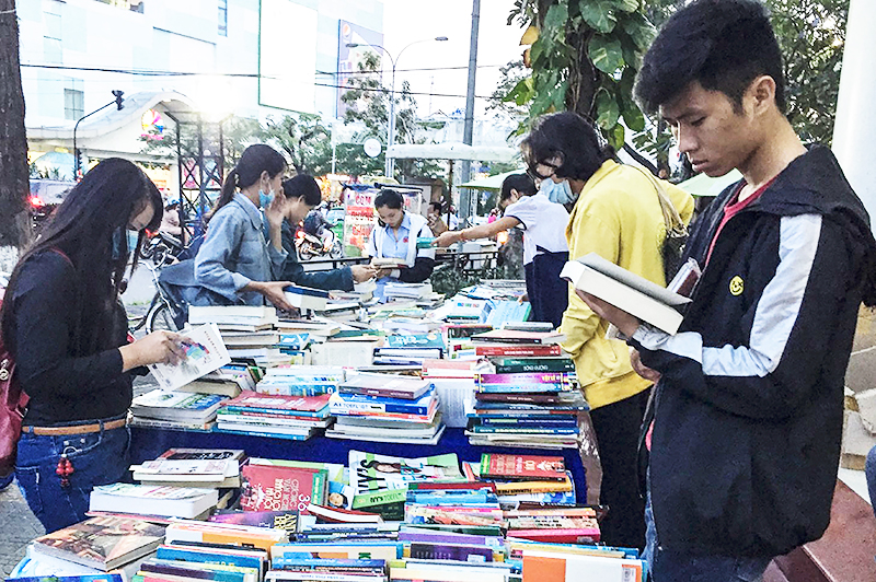 Sinh viên chọn mua sách phục vụ học tập tại Nhà sách Phương Nam, quận Ninh Kiều. Ảnh: THẢO MỘC