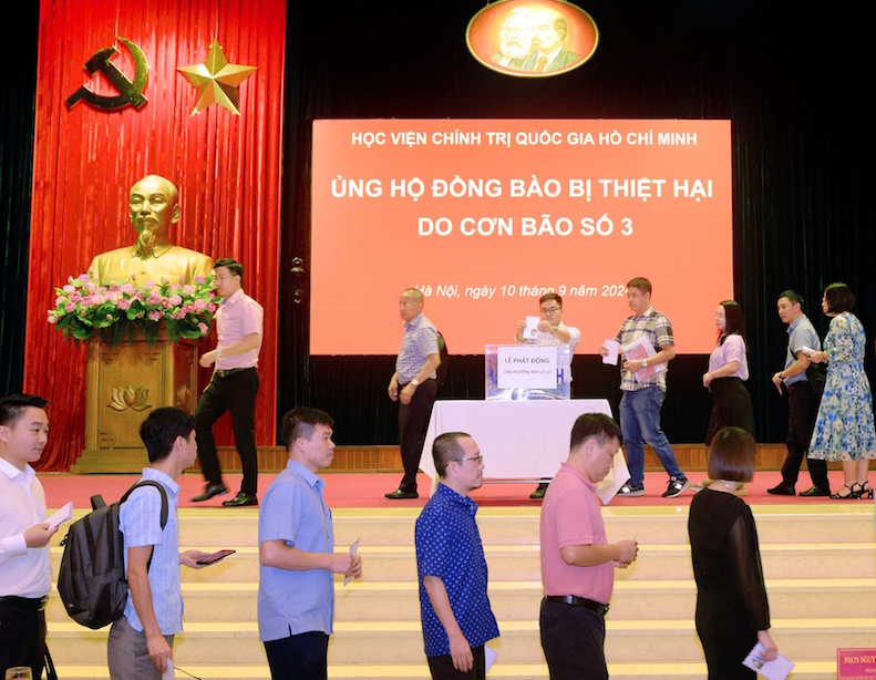 Sáng 10/9, Học viện Chính trị quốc gia Hồ Chí Minh tổ chức phát động ủng hộ đồng bào các địa phương bị thiệt hại do cơn bão số 3.