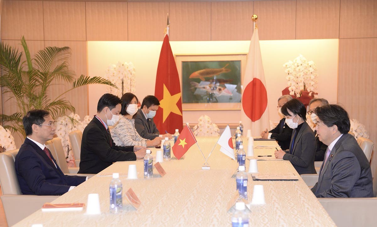 Bộ trưởng Ngoại giao Bùi Thanh Sơn đề nghị 2 Bộ Ngoại giao phối hợp chặt chẽ thúc đẩy tăng cường giao lưu cấp cao và các cấp; hỗ trợ Việt Nam phục hồi kinh tế hậu đại dịch, tập trung vào kinh tế, thương mại, đầu tư, ODA với trọng tâm là phát triển hạ tầng, chuyển đổi năng lượng, y tế và chuyển đổi số. Bộ trưởng Bùi Thanh Sơn cũng đề nghị 2 Bộ Ngoại giao tăng cường tham vấn giữa các Vụ, Cục hoạch định chính sách; hoan nghênh Nhật Bản nâng cấp Văn phòng Lãnh sự tại Thành phố Đà Nẵng thành Tổng Lãnh sự quán (1/2022), đề nghị Nhật Bản cho phép mở rộng khu vực Lãnh sự của Tổng Lãnh sự quán Việt Nam tại Osaka ra 16 tỉnh.