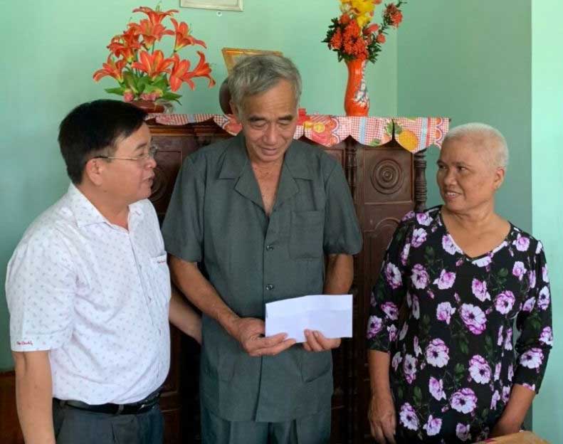 Phó Chủ tịch Hội Doanh nhân trẻ tỉnh - Võ Thanh Tú trao quà cho gia đình ông Lâm Văn Lánh