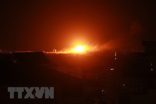 Khói lửa bốc lên sau các cuộc không kích của Israel xuống thành phố Gaza ngày 27/10/2018. (Ảnh: AFP/TTXVN)