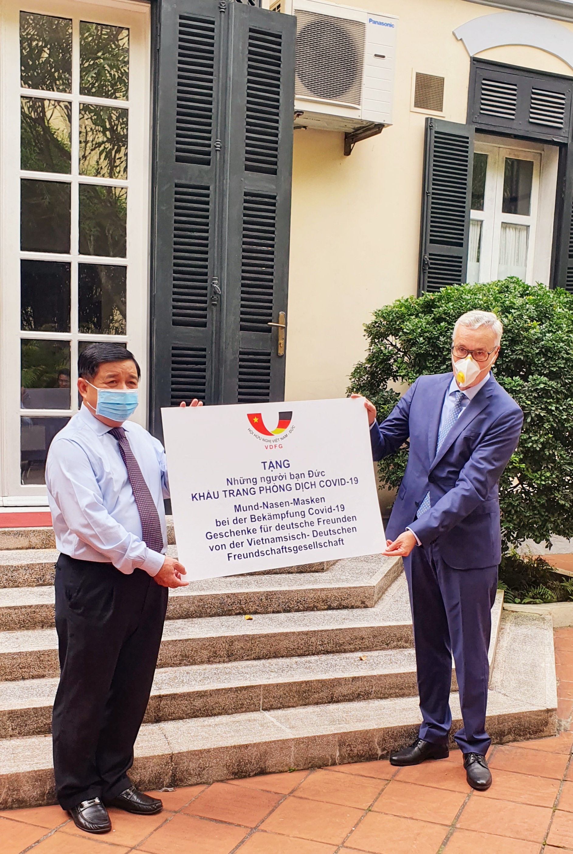 Để góp phần vào cuộc chiến chống đại dịch COVID-19, Hội Hữu nghị Việt Nam - Đức trao tặng nước Đức 80.000 khẩu trang chất lượng cao. Số khẩu trang này là kết quả của một chiến dịch quyên góp Hội đã phát động rộng khắp trong các thành viên của Hội.