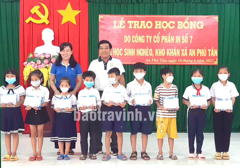 Thông qua vận động, hỗ trợ từ Công ty Cổ phần in số 7 đã trao tặng 40 phần quà (01 triệu đồng/phần) cho các học sinh có hoàn cảnh khó khăn xã An Phú Tân, huyện Cầu Kè.