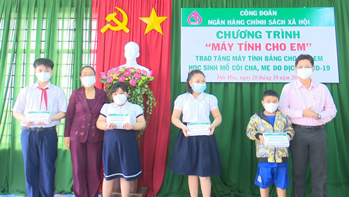 Hội Khuyến học huyện Đức Hòa phối hợp Phòng Giao dịch Ngân hàng Chính sách xã hội huyện trao tặng máy tính bảng cho học sinh