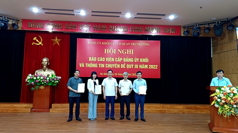 | Đảng uỷ Khối các cơ quan Trung ương trao quyết định cho các báo cáo viên cấp Đảng uỷ Khối nhiệm kỳ 2020 - 2025 (Ảnh: Đ.H) |
