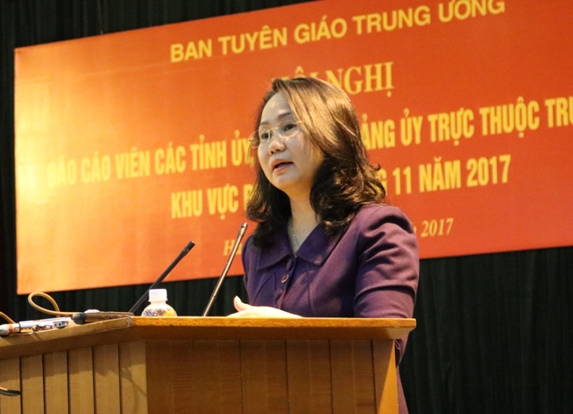 Phát biểu chỉ đạo tại Hội nghị, Phó trưởng Ban Tuyên giáo Trung ương Lâm Thị Phương Thanh đề nghị báo cáo viên các tỉnh ủy, thành ủy, đảng ủy trực thuộc Trung ương cần tập trung phân tích tuyên truyền sâu về 3 chuyên đề trên. Bên cạnh đó cần tập trung tuyên truyền về tình hình kinh tế - xã hội năm 2017. Nêu bật những kết quả quan trọng phát triển kinh tế - xã hội theo Kết luận Hội nghị Trung ương 6 (khóa XII) về tình hình kinh tế - xã hội, ngân sách nhà nước năm 2017 và nhiệm vụ năm 2018. Đặc biệt, cần đẩy mạnh tuyên truyền khắc phục hậu quả cơn bão số 12 vừa qua, kêu gọi tinh thần "Tương thân, tương ái", "Lá lành đùm lá rách" của nhân dân cả nước, người Việt Nam ở nước ngoài ủng hộ đồng bào vùng bị thiệt hại do bão lũ.