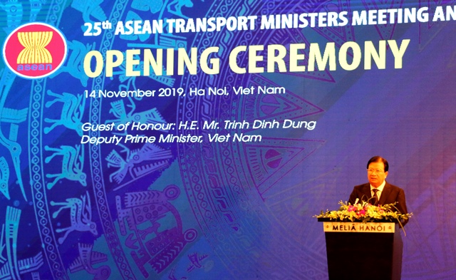 Đến dự và phát biểu khai mạc Hội nghị, Phó Thủ tướng Chính phủ Trịnh Đình Dũng thay mặt Chính phủ và nhân dân Việt Nam, nhiệt liệt chào mừng các Bộ trưởng Giao thông vận tải của các quốc gia thành viên ASEAN, Ngài Tiến sỹ Aladdin D. Rillo - Phó Tổng thư ký ASEAN đến tham dự Hội nghị Bộ trưởng Giao thông vận tải ASEAN lần thứ 25 tại Hà Nội.