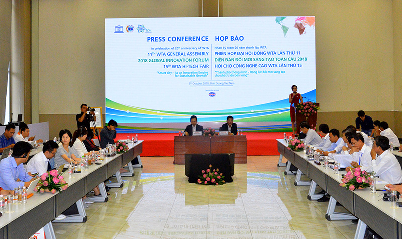 Được sự đồng ý của Thủ tướng Chính phủ, Phiên họp lần thứ 11 của Đại hội đồng WTA, Hội chợ Công nghệ cao và Diễn đàn Đổi mới Sáng tạo toàn cầu năm 2018 sẽ được tổ chức tại tỉnh Bình Dương từ ngày 10 - 13/10/2018 với chủ đề “Thành phố thông minh - Động lực đổi mới sáng tạo cho phát triển bền vững”. Đây là sự kiện đặc biệt quan trọng kỷ niệm 20 năm thành lập WTA; thiết lập tầm nhìn mới cho hoạt động thập niên tiếp theo của WTA; đồng thời thiết lập các hoạt động trao đổi, hợp tác toàn cầu về khoa học công nghệ giữa các thành viên WTA.