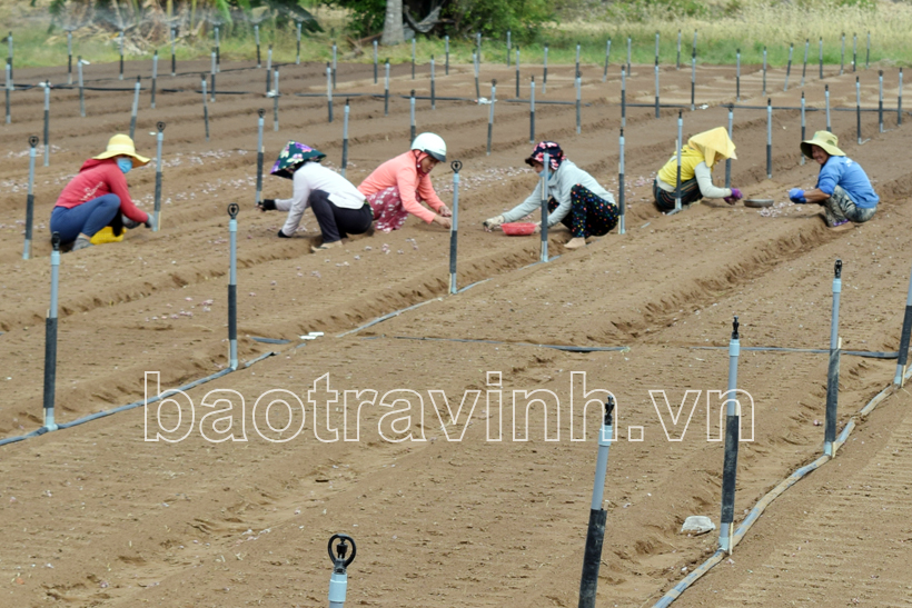 Nông dân xã Trường Long Hòa xuống giống hành tím.