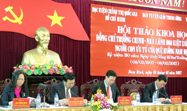 Phát biểu tại Hội thảo, Bí thư Tỉnh ủy Nam Định Đoàn Hồng Phong cho biết, Nam Định tự hào là mảnh đất địa linh nhân kiệt; nơi sản sinh ra rất nhiều các bậc danh tướng, danh nhân kiệt xuất và các nhà lãnh đạo Đảng, Nhà nước, nổi bật là đồng chí Tổng Bí thư Trường Chinh - người Cộng sản kiên cường, mẫu mực; người học trò xuất sắc của Chủ tịch Hồ Chí Minh; nhà chính trị tài ba; nhà tư tưởng, lý luận chính trị kiệt xuất; nhà văn hóa lớn; một nhân cách lớn đã cống hiến trọn đời mình cho sự nghiệp đấu tranh giải phóng dân tộc, thống nhất đất nước, xây dựng và bảo vệ Tổ quốc Việt Nam Xã hội Chủ nghĩa. Với cương vị là Tổng Bí thư và hơn 20 năm là Ủy viên Bộ Chính trị, được phân công giữ nhiều trọng trách lớn của Đảng và Nhà nước, đồng chí Trường Chinh dù ở bất cứ cương vị nào cũng luôn hết lòng vì Đảng, vì nước, vì dân; vững vàng trước mọi khó khăn, thử thách. Phẩm chất cách mạng, trí tuệ và tài năng của đồng chí luôn tỏa sáng; nhất là ở các thời khắc lịch sử quan trọng của cách mạng Việt Nam.
