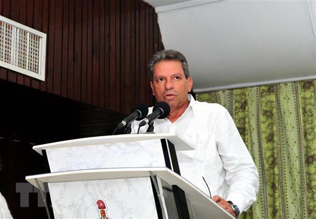 Bí thư Trung ương, Trưởng Ban Tư tưởng Đảng Cộng sản Cuba Víctor Gaute López phát biểu tại hội thảo. (Ảnh: Lê Hà/TTXVN)