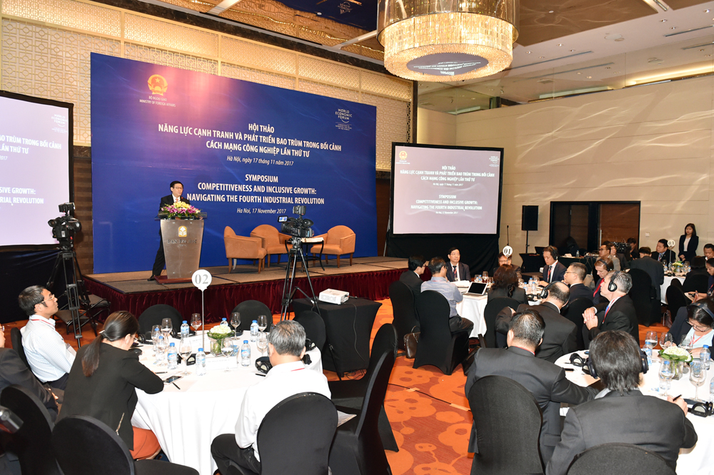 Phát biểu tại Hội thảo, Giám đốc khu vực Châu Á - Thái Bình Dương của WEF Justin Wood đánh giá Việt Nam đã đạt được nhiều thành công trong tăng trưởng kinh tế, cải thiện sức cạnh tranh, thu hẹp khoảng cách phát triển, tiến bộ xã hội. Ông Justin cho rằng Việt Nam hiện có nhiều cơ hội mới để phát triển nhanh, song cũng gặp thách thức lớn hơn do tác động sâu sắc của CMCN 4.0, mà nếu không vượt qua được các thách thức này, thì Việt Nam có nguy cơ bị mắc kẹt trong “bẫy thu nhập trung bình”... Các chuyên gia của WEF đã chia sẻ, cập nhật phương pháp mới nhất của WEF về đánh giá năng lực cạnh tranh quốc gia và phát triển bao trùm; nhấn mạnh WEF đã tích hợp nhiều cách tiếp cận, khái niệm và chỉ số mới vào đánh giá năng lực cạnh tranh để thích ứng với bối cảnh CMCN 4.0, mà WEF gọi là chỉ số năng lực cạnh tranh toàn cầu 4.0 (GCI 4.0). Bộ chỉ số này có tới 67% các chỉ số là chỉ số mới, được WEF hoàn thành xây dựng tháng 9/2017, trong đó nhấn mạnh vào yếu tố con người, năng lực đổi mới, sáng tạo.