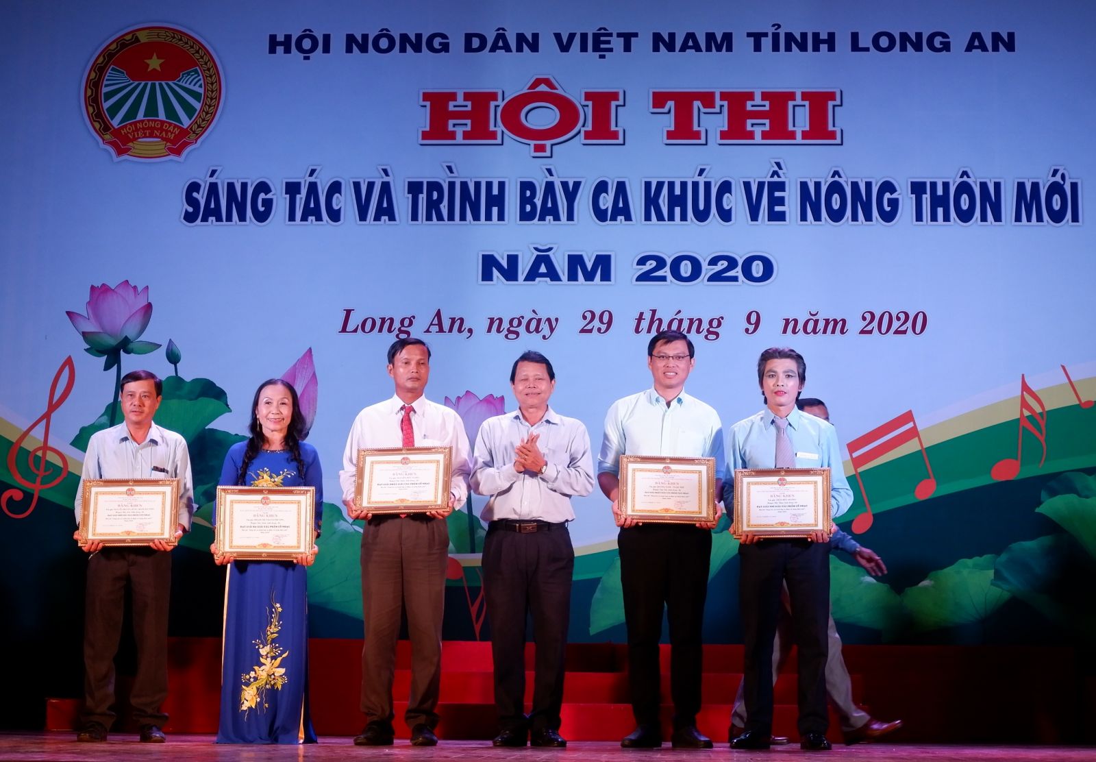 Trong đó, ở phần sáng tác, tác phẩm Tân Trụ ngày mới (nhạc Dương Năm, thơ Nguyễn Ngọc Phú – đơn vị Tân Trụ) đoạt giải Nhất tân nhạc, tác phẩm Đón mừng nông thôn mới (tác giả Nguyễn Hữu Nghĩa – đơn vị Cần Đước) đoạt giải Nhất cổ nhạc.