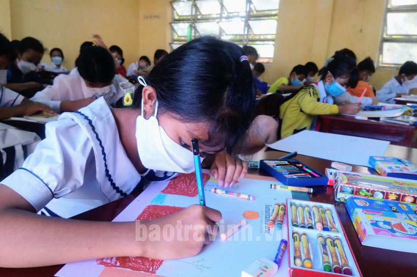 Học sinh tham gia hội thi thuộc khối lớp 3, 4, 5, mỗi trường có từ 40 - 100 học sinh tham gia tại các Trường Tiểu học Kim Hòa A, Kim Hòa B, Hiệp Mỹ Tây A, Hiệp Mỹ Tây C, Long Sơn A, Long Sơn C, Nhị Trường A (huyện Cầu Ngang). Hình thức thi, vòng trường tổ chức thi tại lớp, mỗi lớp bố trí từ 20 - 25 học sinh. Các tranh dự thi được ban tổ chức tập trung chấm điểm để trao giải theo quy định gồm: 01 giải Nhất, 01 giải Nhì, 01 giải Ba và 02 giải Khuyến khích. Các tranh đạt giải cấp trường sẽ chọn tham gia vòng tỉnh.