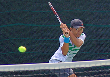 Tay vợt Cao Minh Trí của CLB Quang Phước Tây Đô ở trận đấu vòng loại lứa tuổi U14.