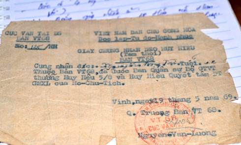 Giấy chứng nhận Huy hiệu của ông vẫn giữ lại từ năm 1969