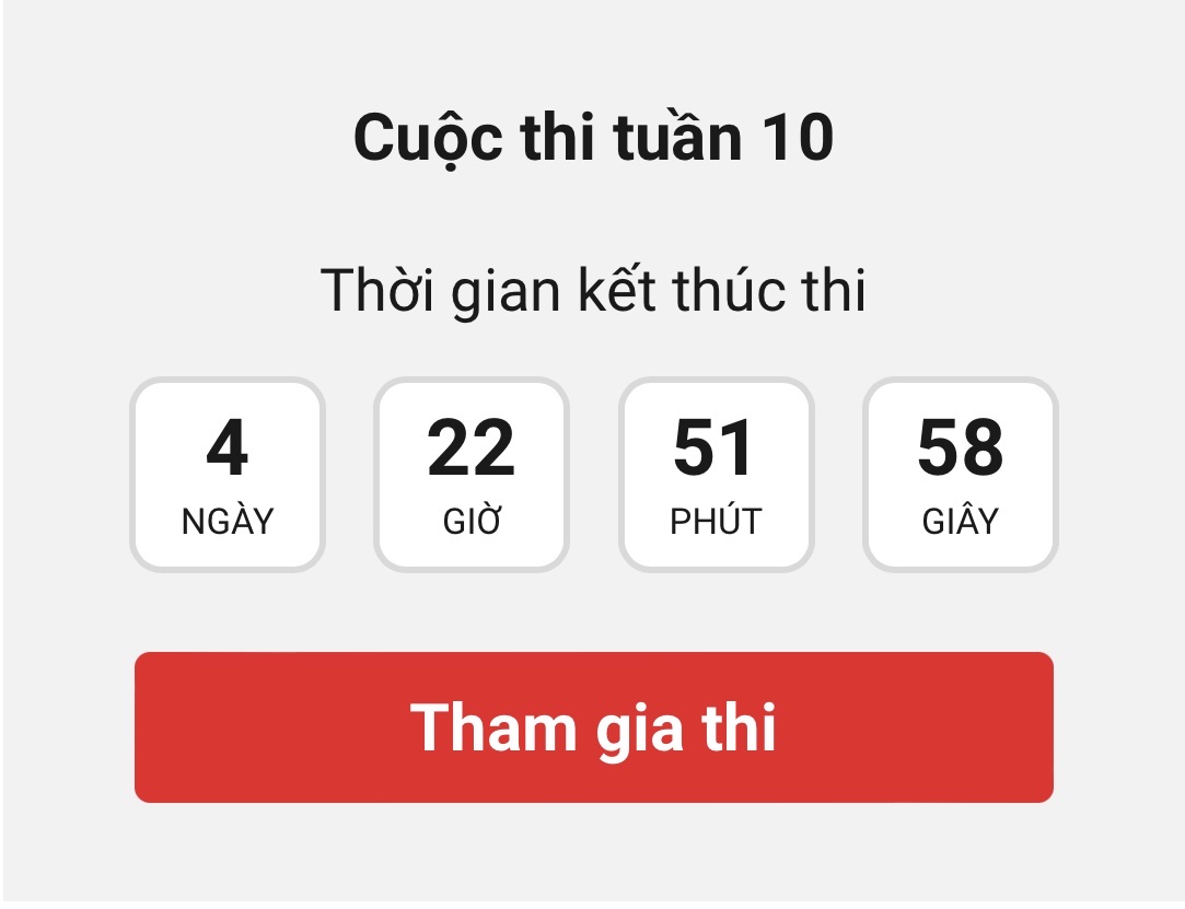 | Tuần 10 của Cuộc thi hiện đang diễn ra và sẽ kết thúc vào 15h00 ngày thứ Hai tuần tới, ngày 22/8/2022 (Ảnh chụp màn hình giao diện Cuộc thi). |