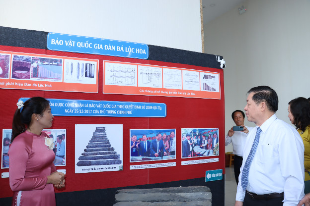 Một trong những di sản văn hóa quý và nổi bật được trưng bày, giới thiệu là Bảo vật quốc gia đàn đá Lộc Hòa (bộ phiên bản). Nhạc cụ đàn đá này được làm từ chất liệu đá sừng, có niên đại khoảng 3.000 năm. Việc trưng bày các hiện vật, hình ảnh, tư liệu không chỉ để phục vụ các đại biểu, khách tham quan tại hội nghị mà còn giới thiệu, quảng bá đến công chúng về các giá trị di sản văn hóa tiêu biểu của tỉnh.