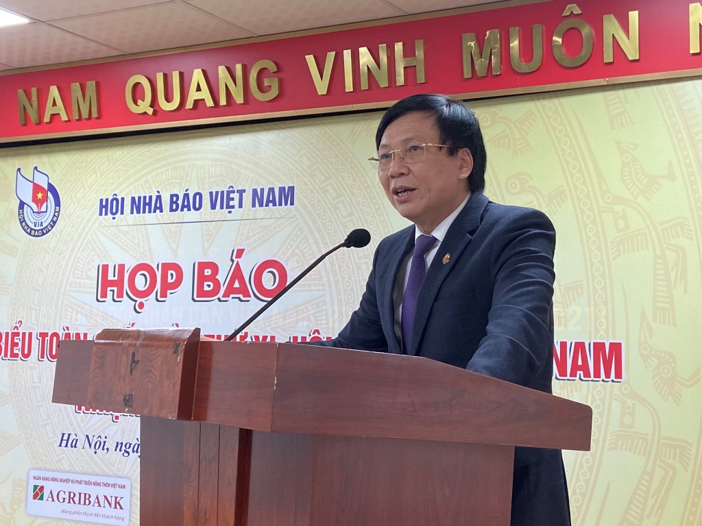 | Phó Chủ tịch Thường trực Hội Nhà báo Việt Nam Hồ Quang Lợi phát biểu tại buổi họp báo |