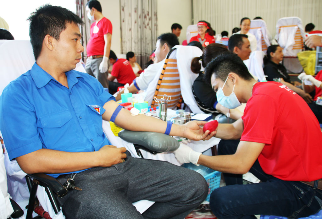 Đoàn viên thanh niên tham gia hiến máu trong Ngày hội hiến máu - "Tình người Vàm Cỏ"