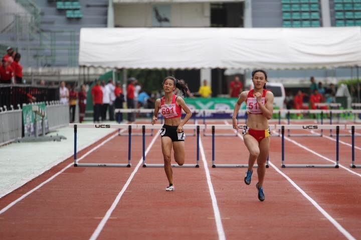 Hồng Hân (trái) chỉ giành HCB 400m rào nữ. Ảnh A.A.A