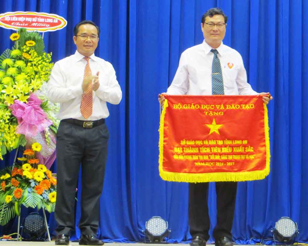 Giám đốc Sở Giáo dục và Đào tạo Long An - Nguyễn Thanh Tiệp ôn lại truyền thống vẻ vang của ngành. Từ truyền thống ấy, đội ngũ công tác trong ngành giáo dục và đào tạo luôn phấn đấu, hoàn thành nhiệm vụ. Từ năm 1990 đến nay, Long An có 42 nhà giáo được phong tặng danh hiệu Nhà giáo ưu tú. Riêng năm 2017, tỉnh xét và đề nghị công nhận 1 Nhà giáo nhân dân và 64 Nhà giáo ưu tú.