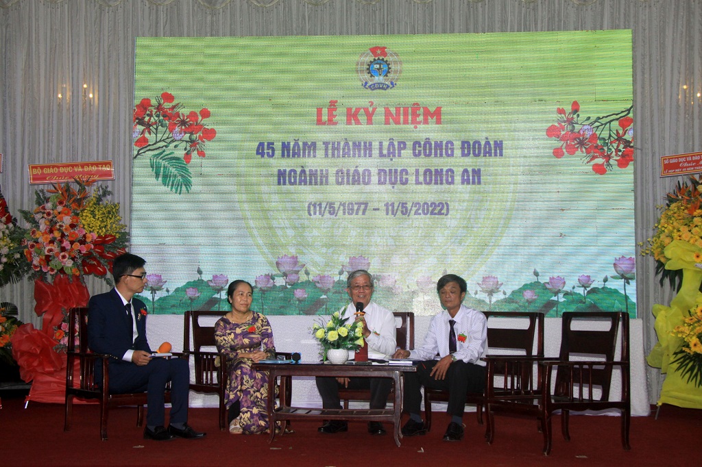 Dịp này, ông kêu gọi các cấp trong hệ thống Công đoàn ngành Giáo dục Long An tiếp tục đổi mới tổ chức và hoạt động công đoàn, nhằm xây dựng Công đoàn cơ sở vững mạnh và có nhiều sáng kiến, biện pháp để thúc đẩy phong trào thi đua ngày càng phát triển. Ông mong muốn, toàn ngành Giáo dục Long An đồng tâm nhất trí, đoàn kết phấn đấu để làm trạng rỡ thêm truyền thống 45 năm Công đoàn ngành Giáo dục Long An, quyết tâm hoàn thành thắng lợi mục tiêu và nhiệm vụ phát triển sự nghiệp GD&ĐT mà Nghị quyết Đại hội XIII của Đảng và Nghị quyết Đại hội XI Đảng bộ tỉnh đề ra.