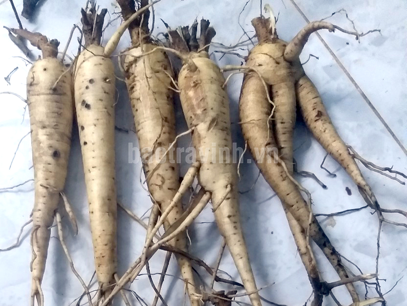 Củ sâm Bố chính (11 tháng tuổi) được HTX nông nghiệp Nhật Linh thu hoạch trong vụ sâm năm 2020.