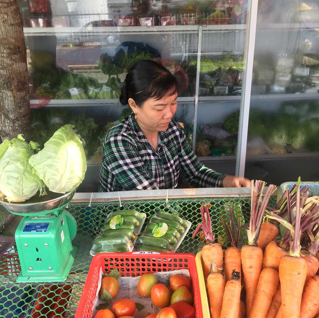 Điểm bán rau an toàn của Hợp tác xã Rau sạch hữu cơ Khôi Nguyên ở thị xã Kiến Tường