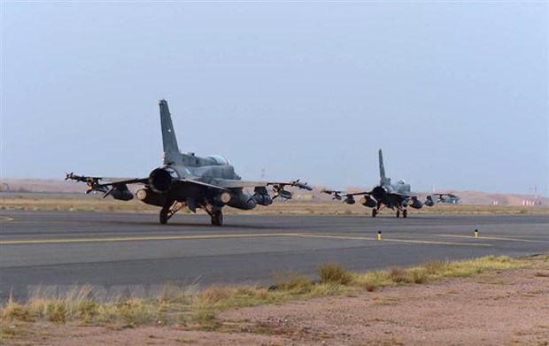 Máy bay tại một căn cứ không quân của Saudi Arabia ở Yemen. (Ảnh: AFP/TTXVN)
