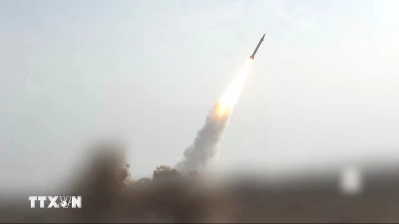Hình ảnh video do Phong trào Houthi cung cấp: Tên lửa siêu thanh được phóng từ một địa điểm bí mật ở Yemen nhằm vào tàu hàng trên Biển Arab (Ảnh: THX/TTXVN)