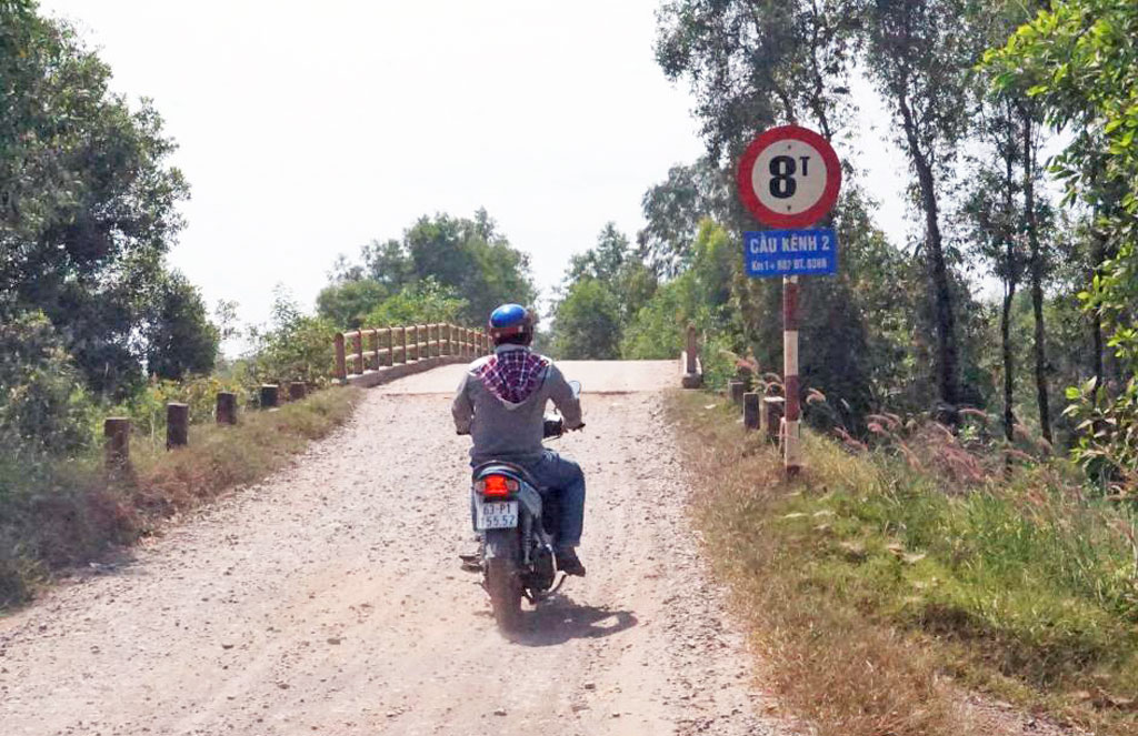 Cầu Kênh 2 trên Đường tỉnh 836B quá nhỏ hẹp, chỉ có tải trọng 8 tấn, không đáp ứng yêu cầu vận chuyển hàng hóa